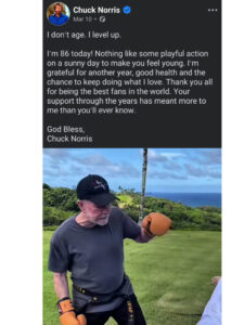 Just days before the news surfaced, the iconic Walker, Texas Ranger star shared what is believed to be his final message on social media. In a post dated March 10, Norris marked his 86th birthday with a lighthearted and inspiring message to his fans.