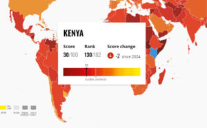 In the report, Kenya scored 30 points out of 100, a decline from 32 points recorded in 2024. The score shows that corruption remains a serious problem in the public sector despite repeated promises by the government to fight graft.