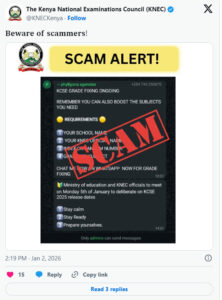 The Kenya National Examinations Council (KNEC) has sent a strong warning to students and parents after a new online scam targeting 2025 KCSE candidates emerged.