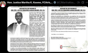 In her statement, Koome praised him as a humble and principled judge who strongly defended the Constitution, human dignity, and electoral justice. She said his life reflected service to the nation and compassion for the vulnerable.